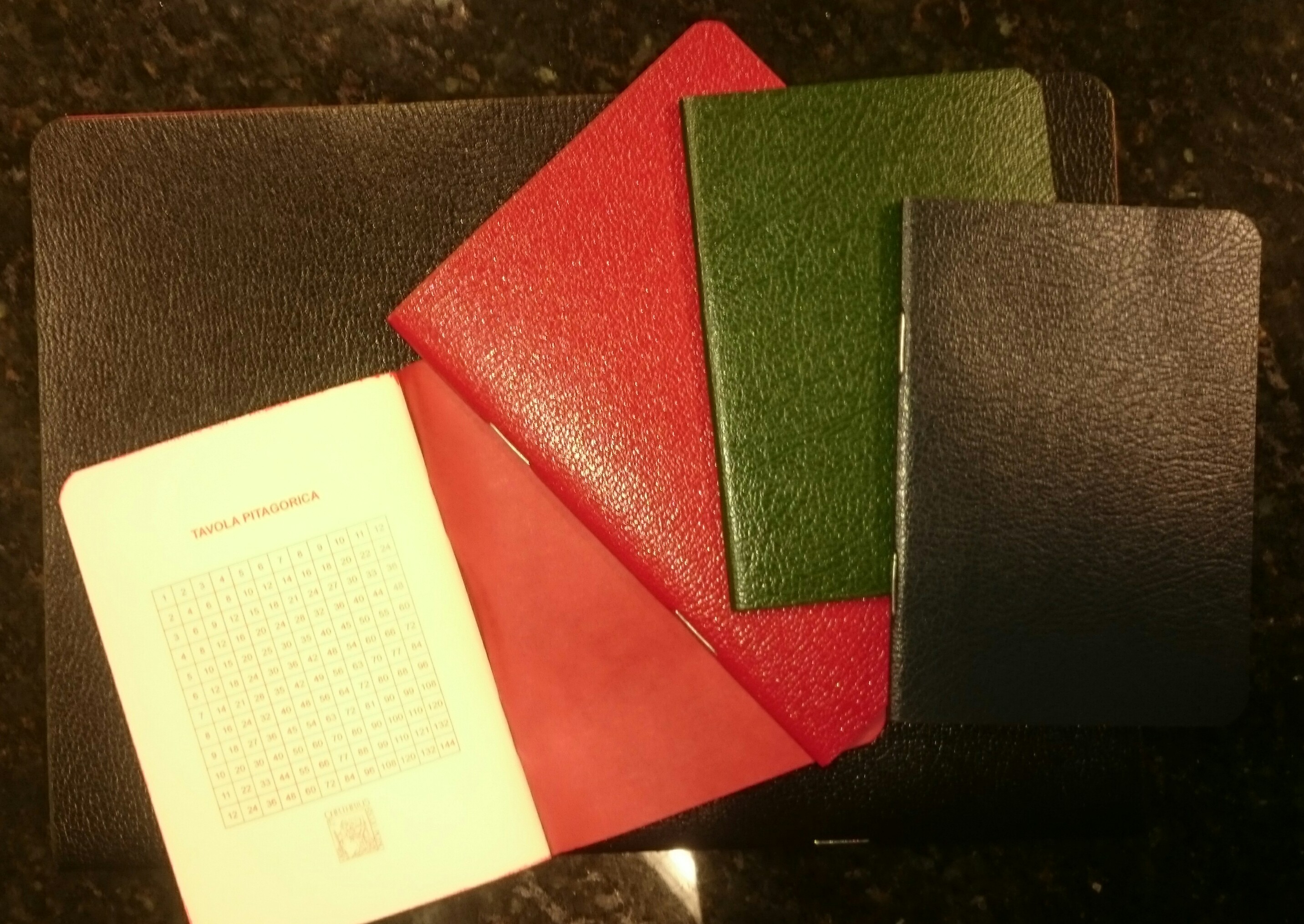 Quaderno con copertina rossa, bordo inchiostrato rosso. Formato 20cm x 14cm. Rigatura: pagina bianca.