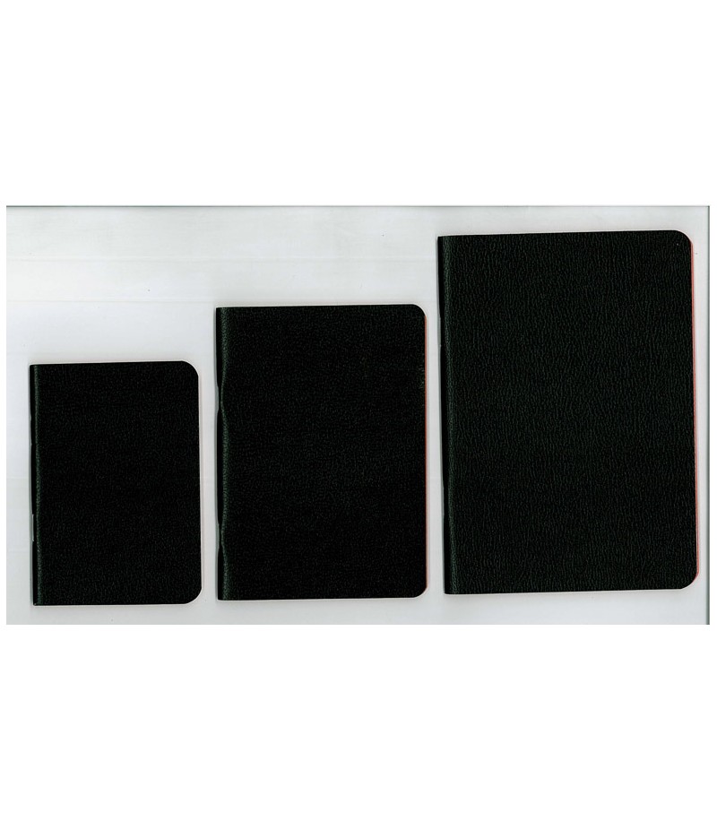 Quaderno con copertina nera, bordo inchiostrato rosso. Formato 16,5 cm x 12 cm. Rigatura: quadretti 5mm.