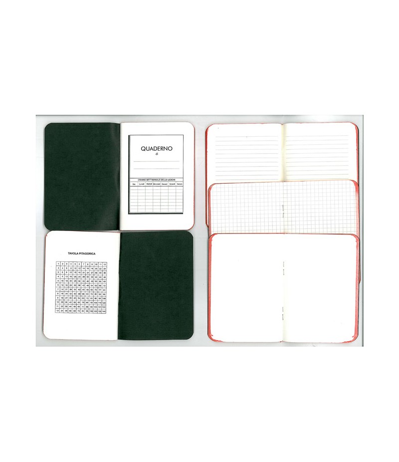 Quaderno con copertina nera, bordo inchiostrato rosso. Formato 14 cm x 9,5 cm. Rigatura: righe.