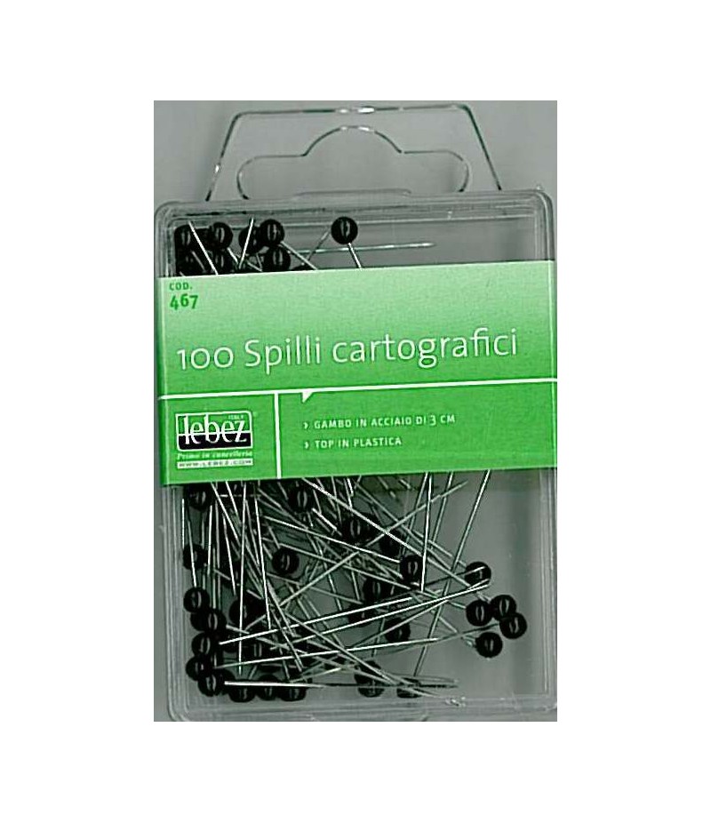 confezione 100pz Spillo acciaio, pallina plastica nero Altezza 3 cm
