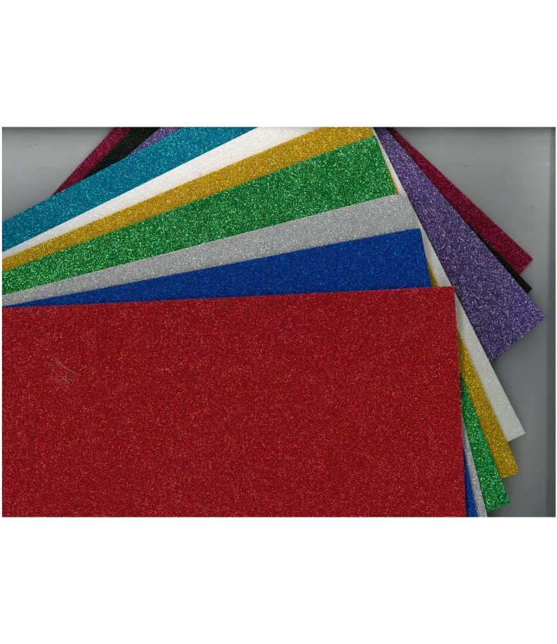 Foglio spessore 2 mm Dimensione 21 cm x 29,70 cm Confezione 10 fogli Colori: rosso, azzurro, nero, blu, giallo, bianco, grigio, verde scuro, viola, rosa.
